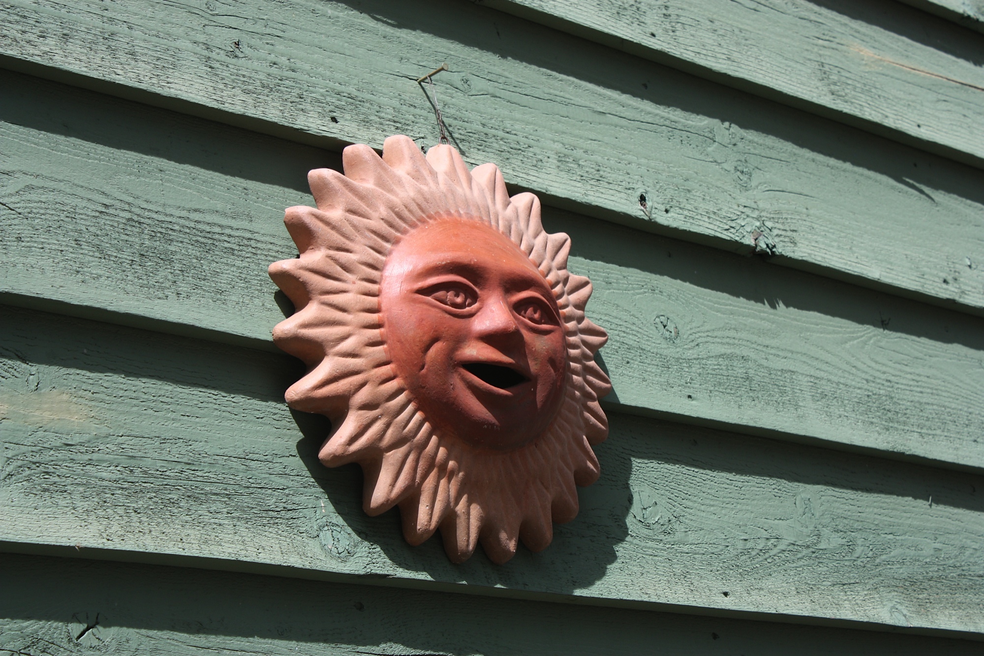 The snow finally stopped, the sun came out and today was a day for those wonderful rites of spring! Wash the cushions for the porch, wash the screens for the windows (fond childhood memories for this one), sweep the garage, hang clay Mr. Sunshine on wall, expand garden which means remove grass, start adding compost to garden, beg husband to get out of chair and help, look for children to help who are nowhere in sight, sweep and clean flagstones and finally plunk down and watch the Kentucky Derby. Happy May!!