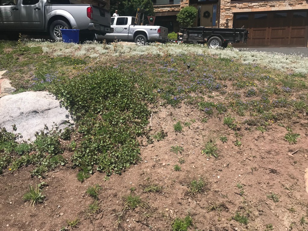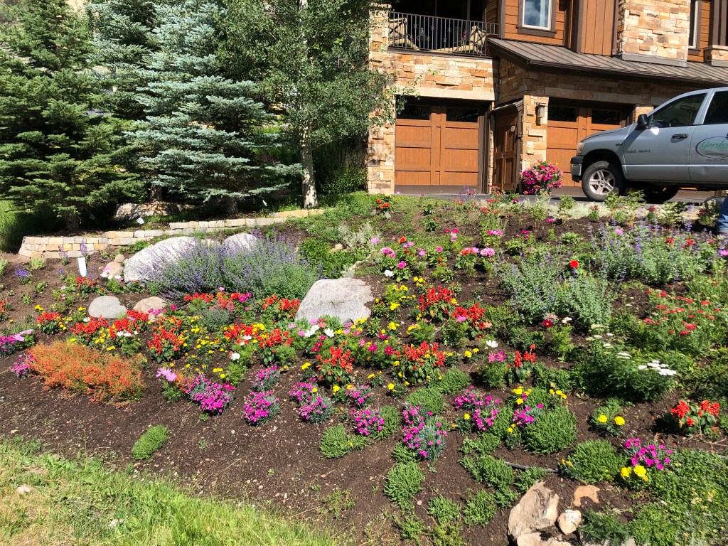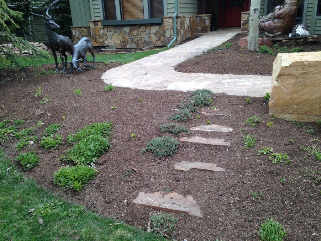 We never use shredded cedar mulch in flower beds only in shrub beds. While it can be done we find cedar mulch harder to work with in flower beds. It is great for hillsides and windy areas. We use it to retain moisture and reduce weeds in shrub beds. Honestly I prefer cedar mulch and do not have positive things to say about large bark mulch and painted mulches. Let’s just say not only are they ugly but they can be awful for gardens since they do not break down easily.