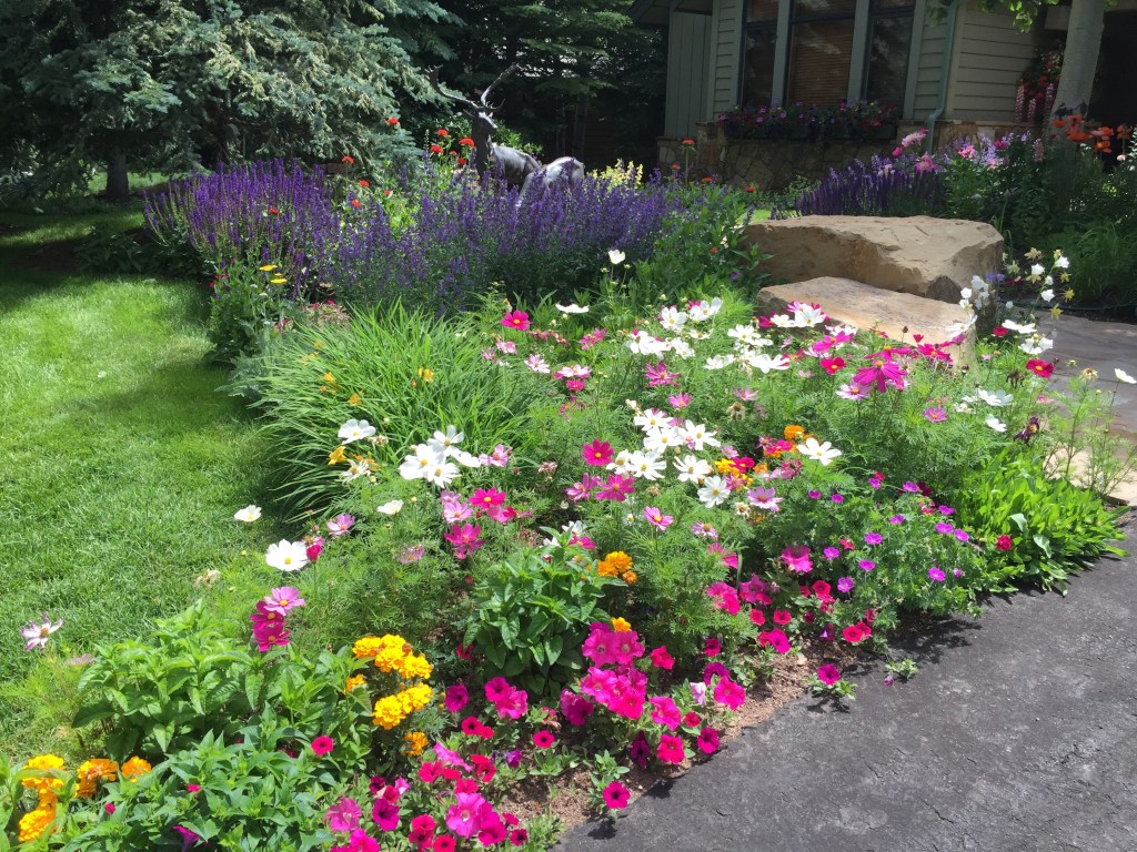 In addition to organic compost we love soil pep for our flower beds. This is a finer, darker mulch which is all natural. It helps keep moisture in and reduces the need for weeding. It is great to use after planting and in established flower beds where top dressing is easier than amending. We spread the soil pep an inch or two thick on top and generally do not work it in.