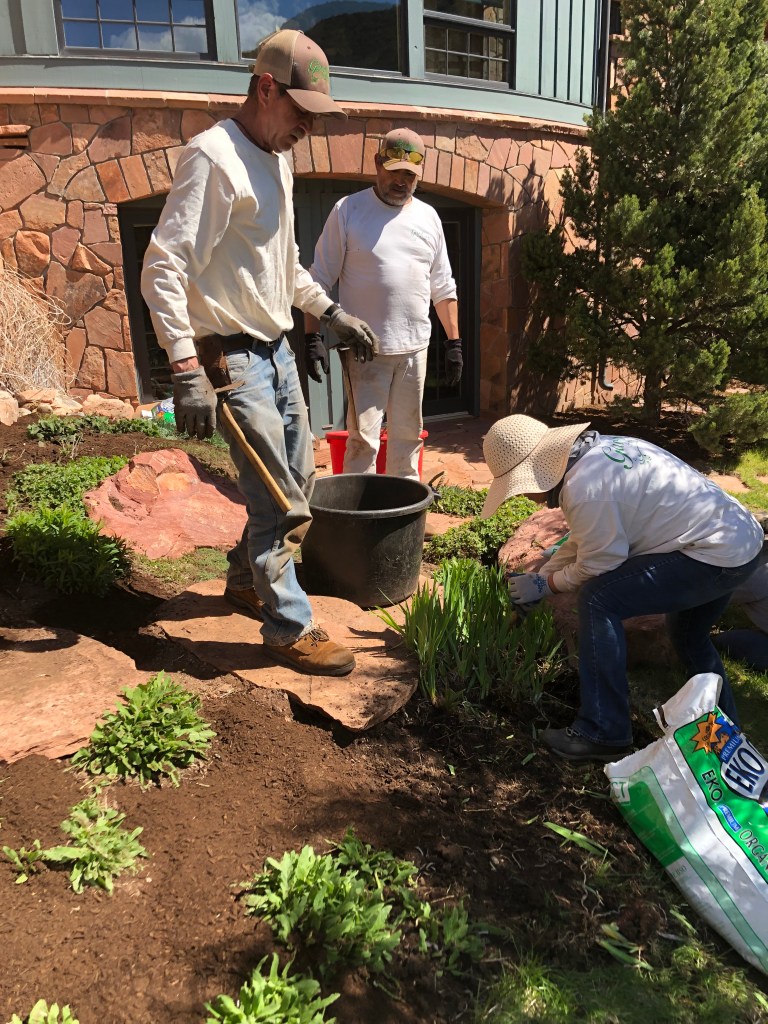 A common question I get asked regularly is about soil preparation, spring cleanups and the products we use for garden care. With all products you must read the instructions! We start the gardening season at the end of April once the weather and soil start to warm up. Our most basic tasks include removing leaves that were left in the fall, weeding and removing winter debris (trash, gravel, broken branches). Prepping the soil is the next step and the most important step.