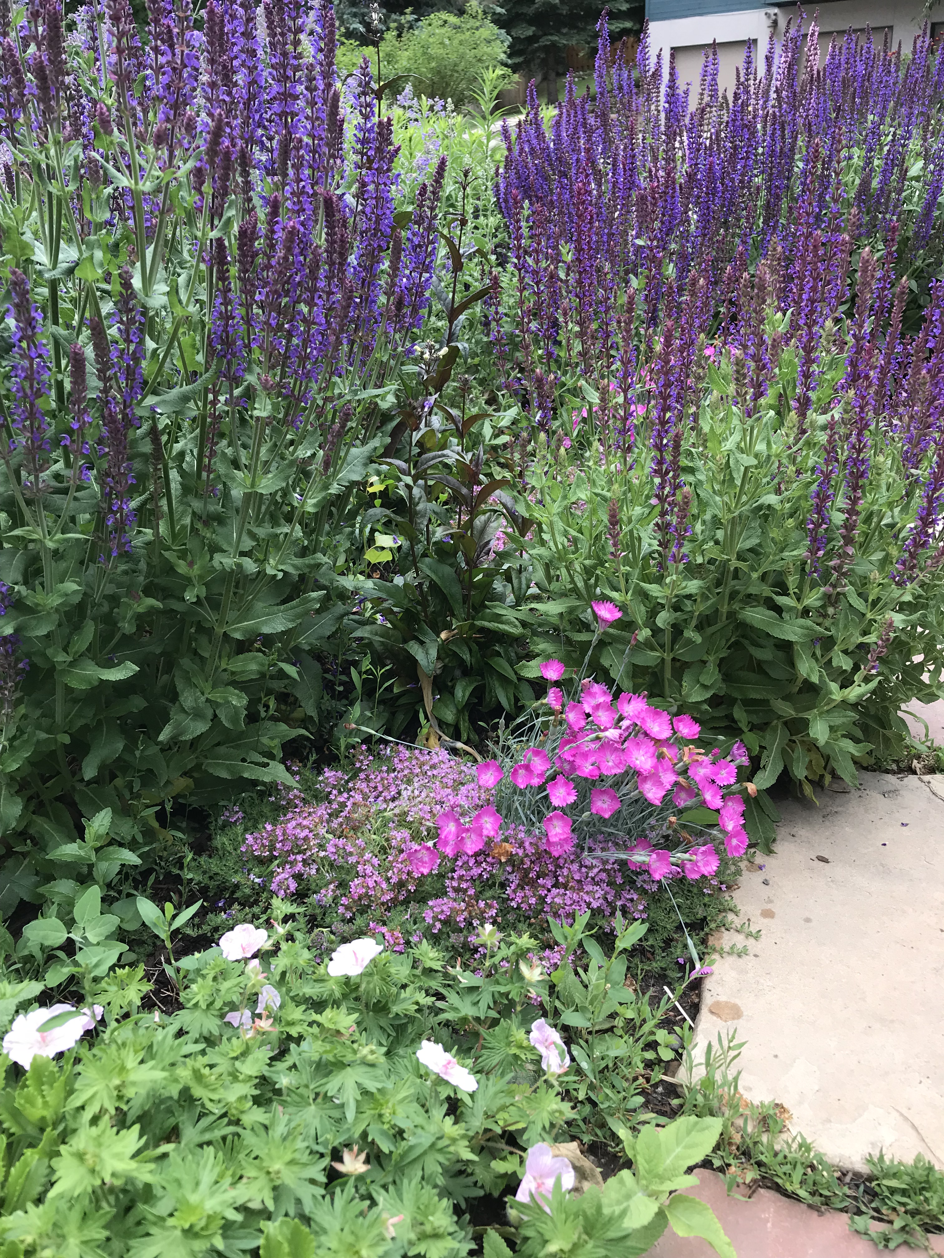 The only flowers planted in a straight line here are the lavenders on the Lavender slope! I enjoy the “cottage” style as well. Love the way the garden changes as different plants become the “stars” during their bloom period, and then supporting cast as other flowers take their place, and the way things self-seed and pop up here and there. Have a great season.