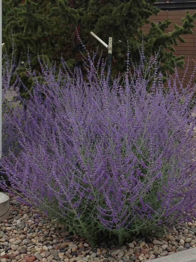 Russian Sage is a fabulous perennial that is both deer resistant and drought tolerant. It blooms in the late summer/early fall.
