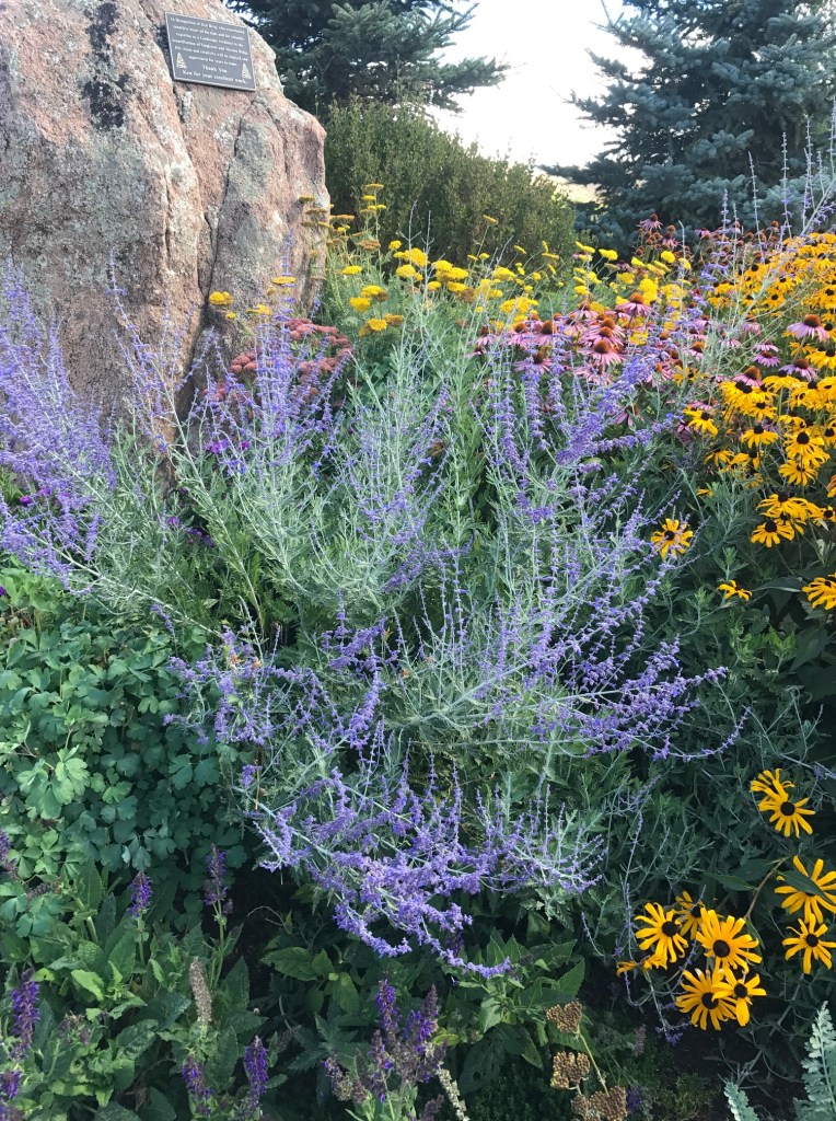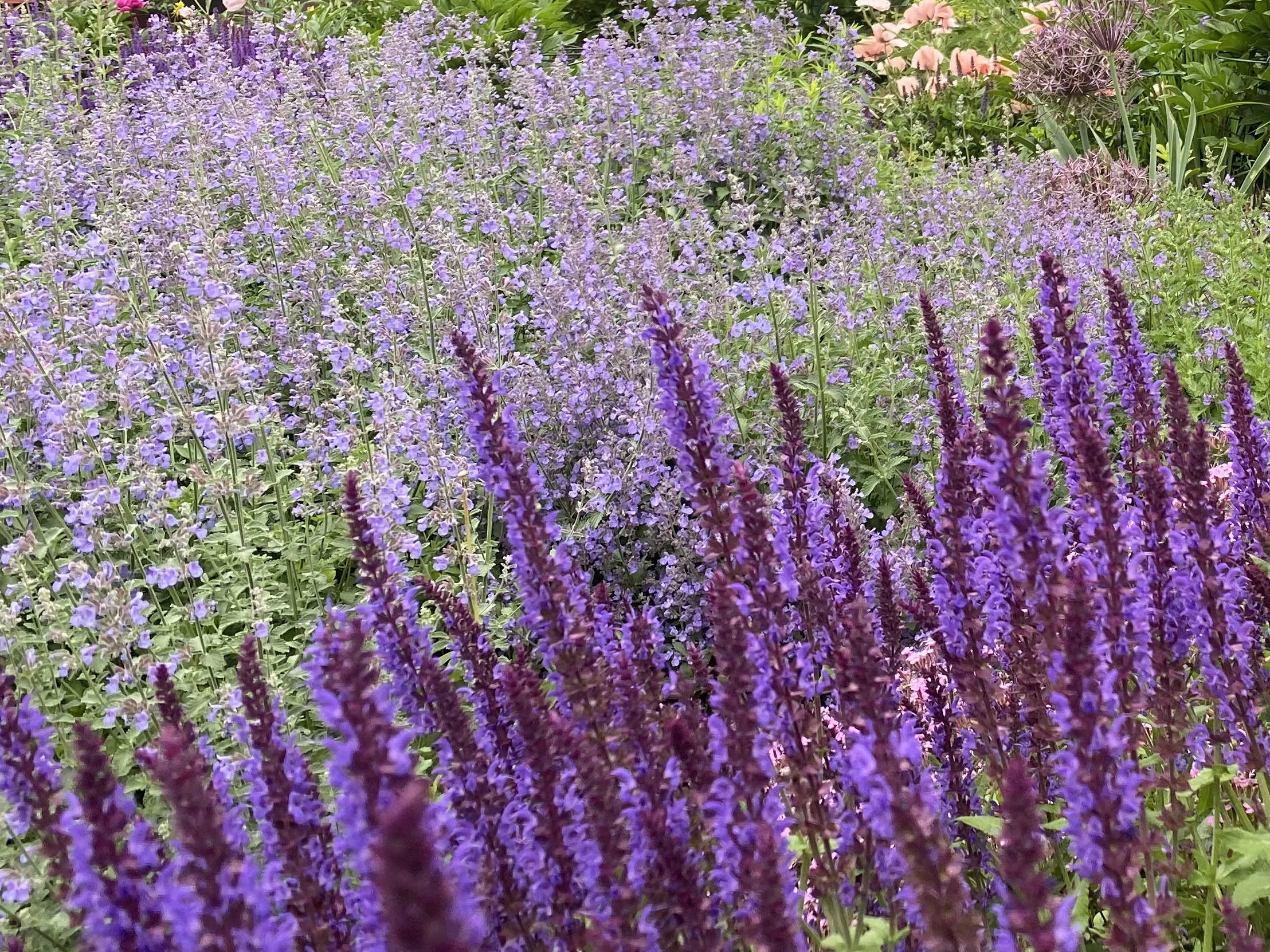 ‘May Night’ Salvia is in the foreground and ‘Six Hills Giant’ Nepeta is in the background. Any variety of Salvia or Catmint seems to be deer resistant and drought tolerant.