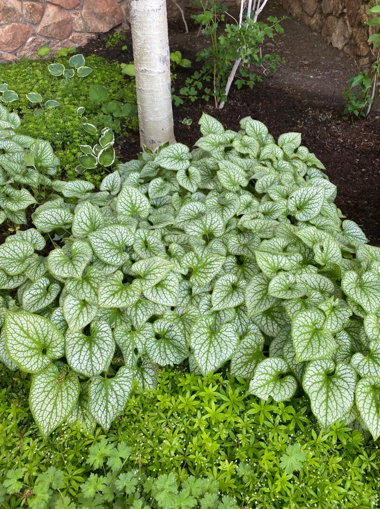 ‘Jack Frost’ Brunnera is for shady gardens. I have never seen them get eaten and they are our go to perennial for shade.