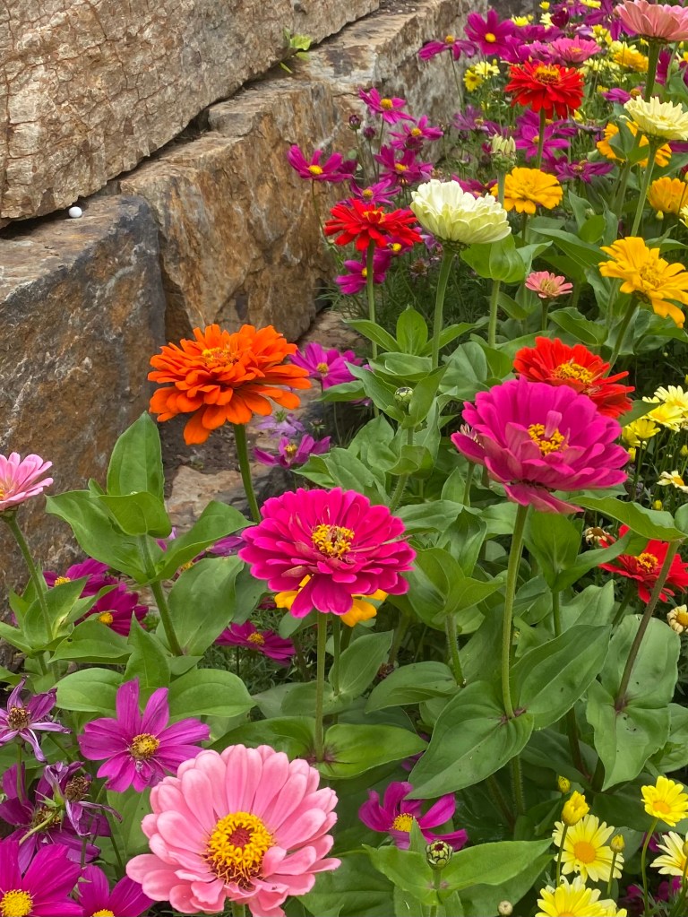 Zinnias are the best when you want mid to late summer color and the deer seem to leave them alone. This is a taller variety called ‘State Fair Mix’. Love these annuals!